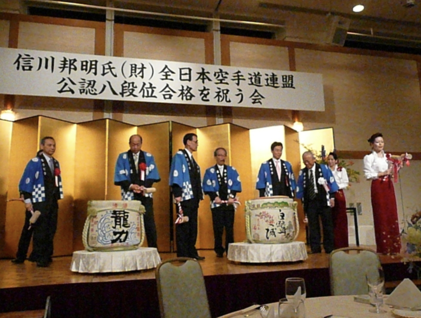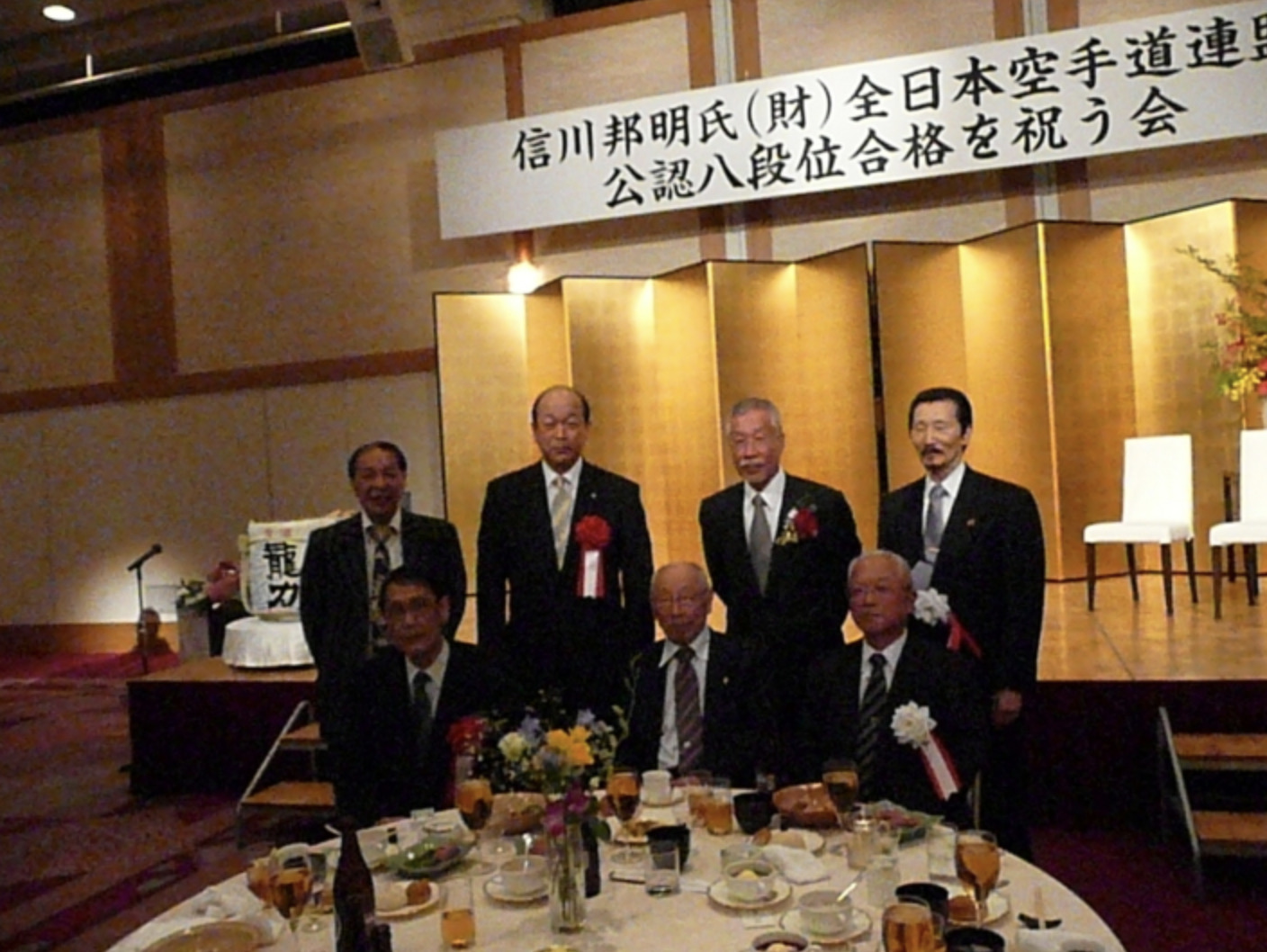 「信川邦明」日本空手道信川派糸東流会会長の公認八段位合格を祝う会が催されました。