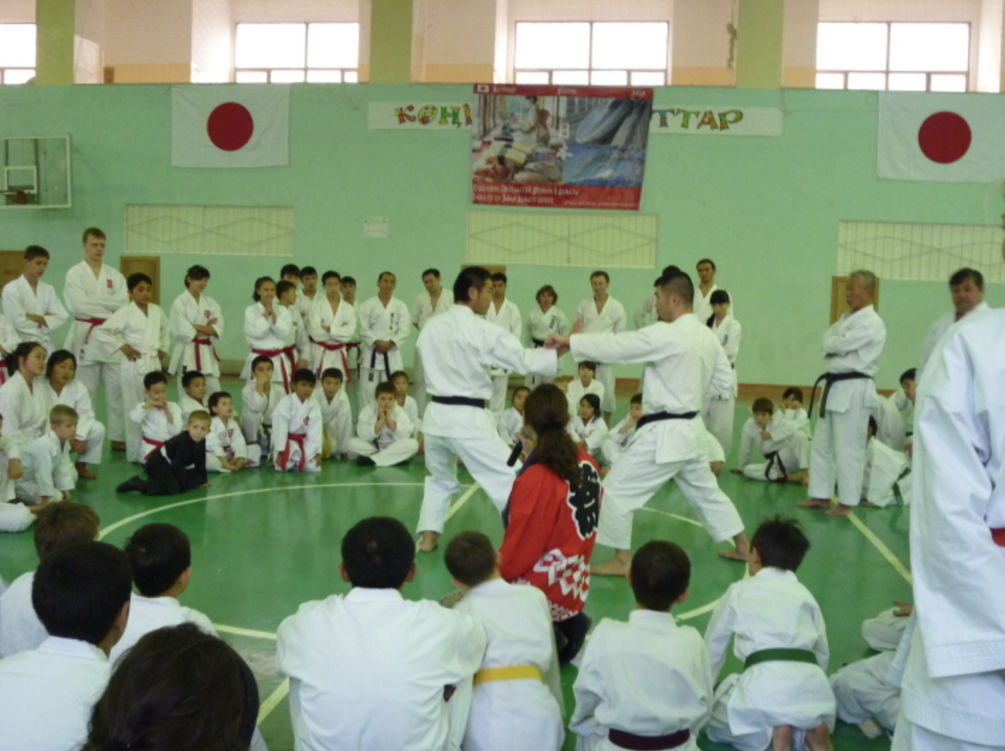 | 11月12日 | 10:00 | デモンストレーション及び講習会 ドゥシャンベ市かスリ・テンニン体育館にて中山臨時代理大使及びサイードフ・サイドオヴィド会長も挨拶の後、 日本側信川団長が挨拶を行った。その後トゥスンザーデ市サマンダル21体育館と同じく演武と講習を行った。 |